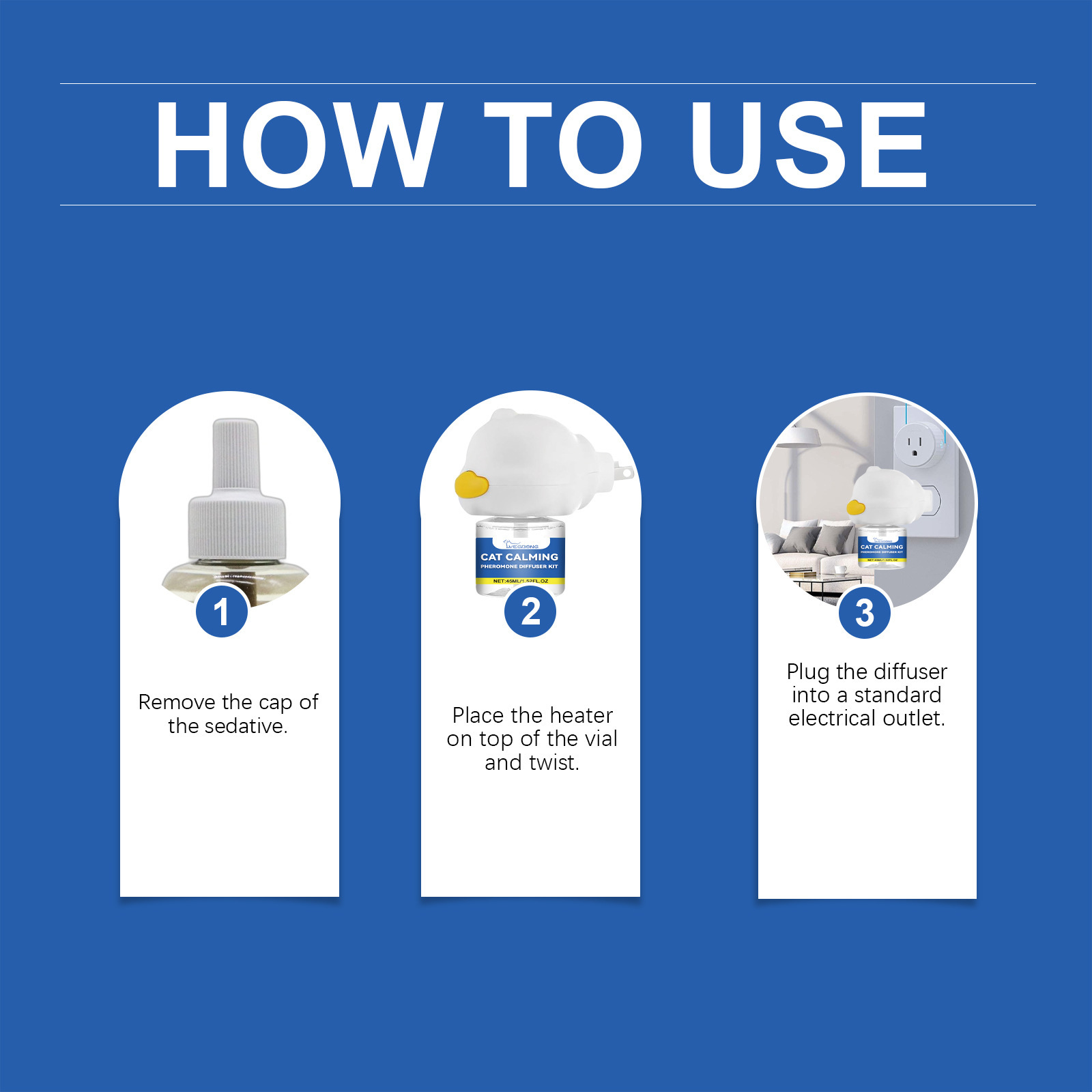 Easy to use and mess-free, simply place the diffuser in your space to create a comforting environment your pet can relax in every day.